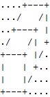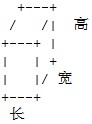 每个顶点用1个加号‘+’表示,长用3个‘-’表示,宽用1个‘/’表示,高用两个‘|’表示。字符‘+’ ‘-’ ‘/’ ‘|’的ASCII码分别为43,45,47,124。字符‘.’(ASCII码46)需要作为背景输出,即立体图里的空白部分需要用‘.’代替。立体图的画法如下面的规则: