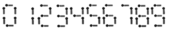 给你n根火柴棍,你可以拼出多少个形如“A+B=C”的等式?等式中的A、B、C是用火柴棍拼出的整数(若该数非零,则最高位不能是0)。用火柴棍拼数字0-9的拼法如图所示: