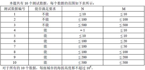 接下来N行,每行M个正整数,依次代表每座城市的海拔高度。