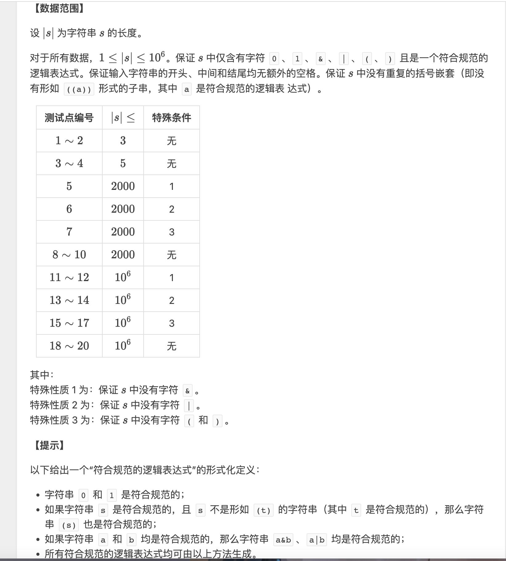 【样例解释 #1】(0|1&0|1|1|(1|1))&(0&1&(1|0)|0|1|0)&0