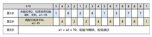 例如,卡号5432123456788881的3步校验计算过程如下表所示。