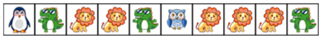 如果连续 3 个以上动物卡片相同,且数量是奇数的,只能两两相除,剩下 1 个不能消除。