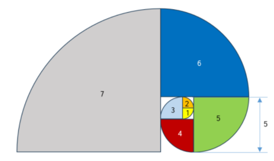 棉棉喜欢画画,她用电脑画了个图形,图形由学个真角扇形(四分之一圆)组合而成,分别编号为1,2,3...,如下图所示。编号为1的黄色扇形的半径是1。