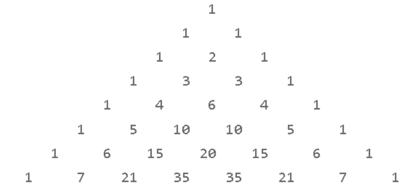豆豆最近开始研究帕斯卡三角形了。例如下图是一个8层的帕斯卡三角形: