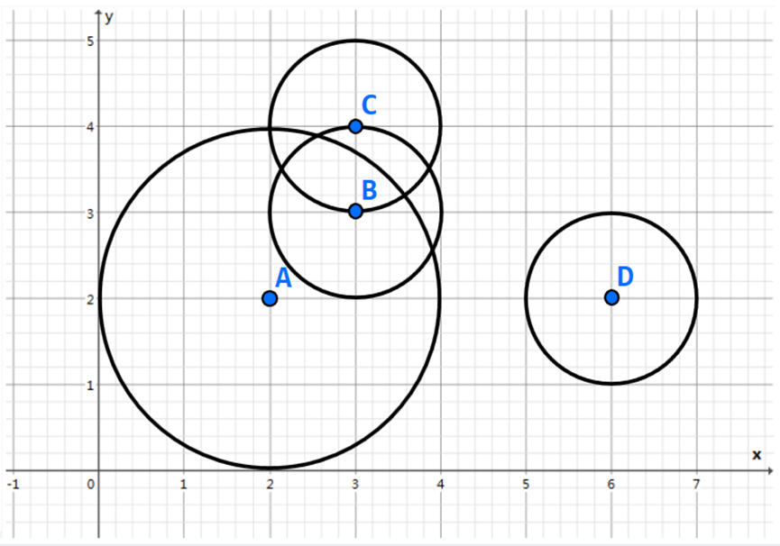 测试点1~10:1≤n≤100,1≤xi,yi,ri≤105。