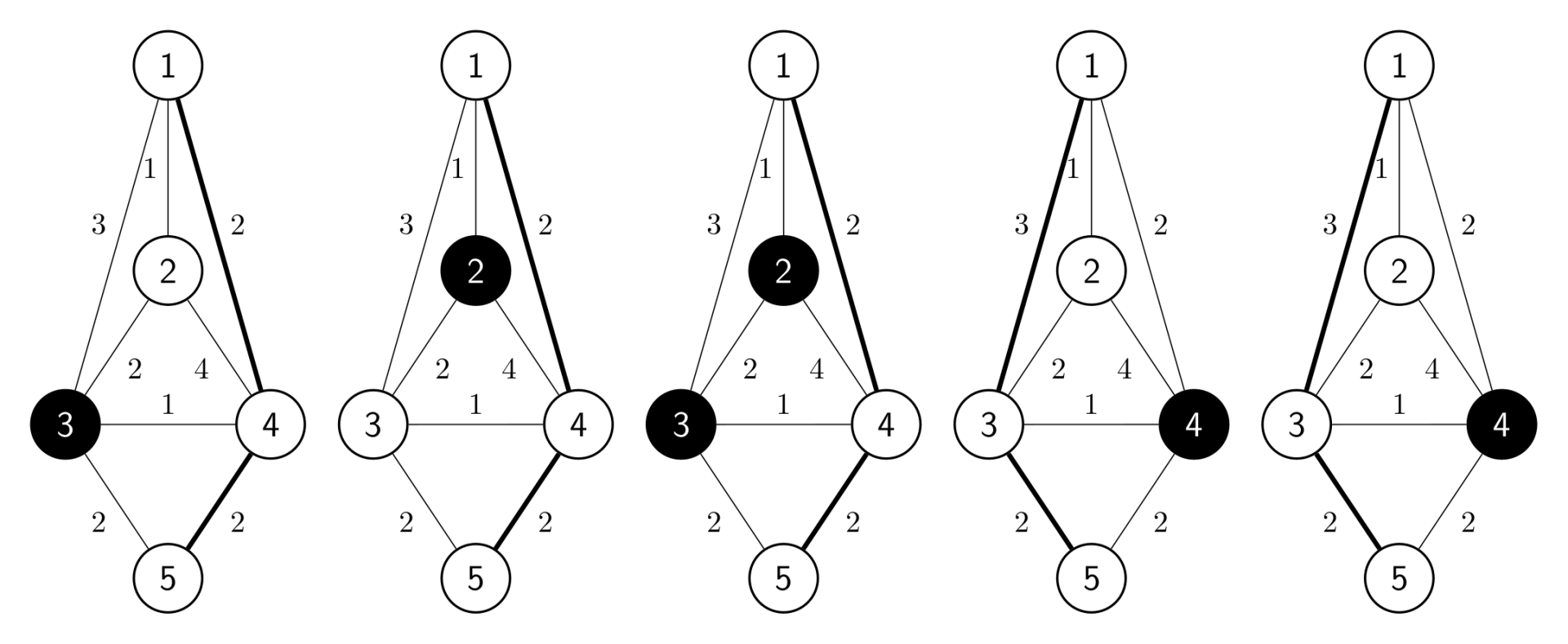 - 前三天使用路线 $1 \to 4 \to 5$ ,每日距离为 $2 + 2 = 4$ ,三天总距离费用为 $4 \times 3 = 12$ 。